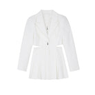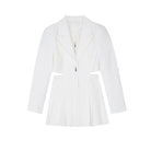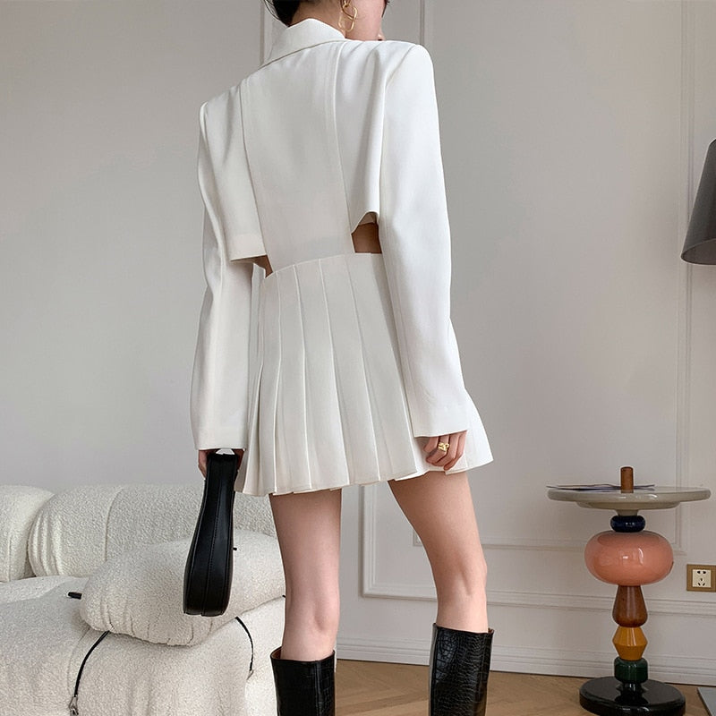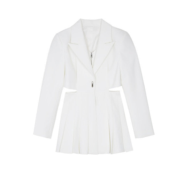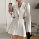 Minivestido de manga larga con diseño recortado, cuello con solapa de pico, estilo falda plisada y cierre de cremallera