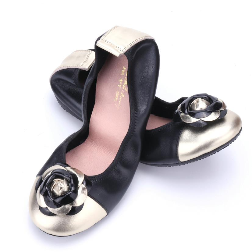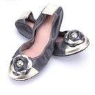 Bailarinas con Decoración Floral en Piel de Vaca Genuina