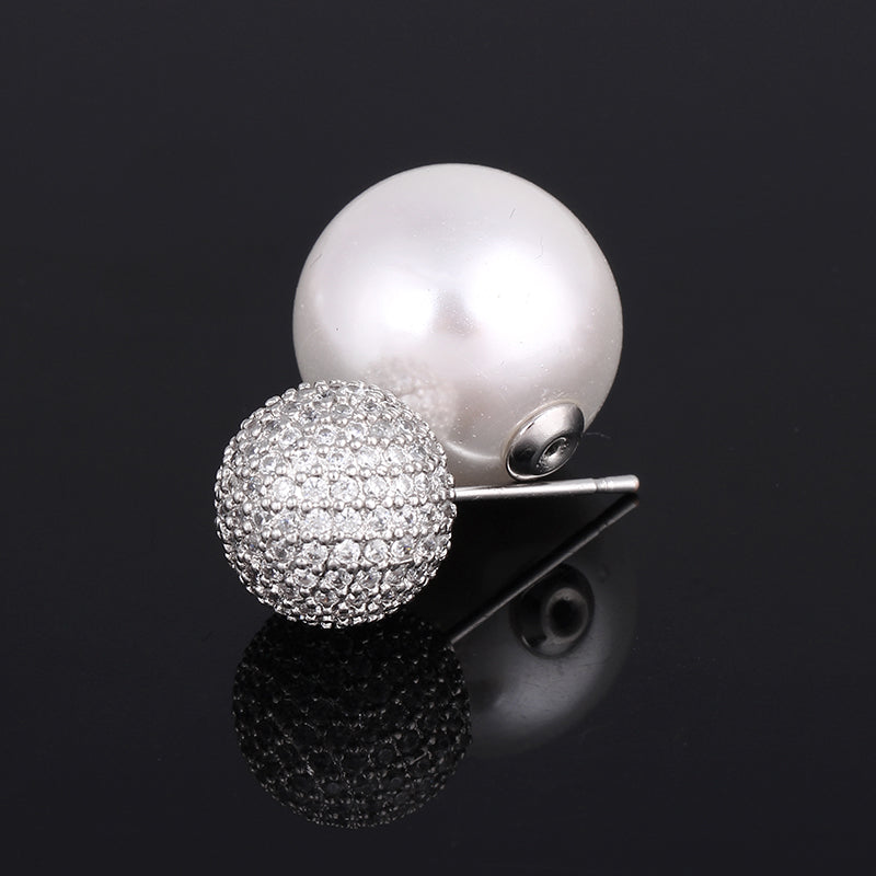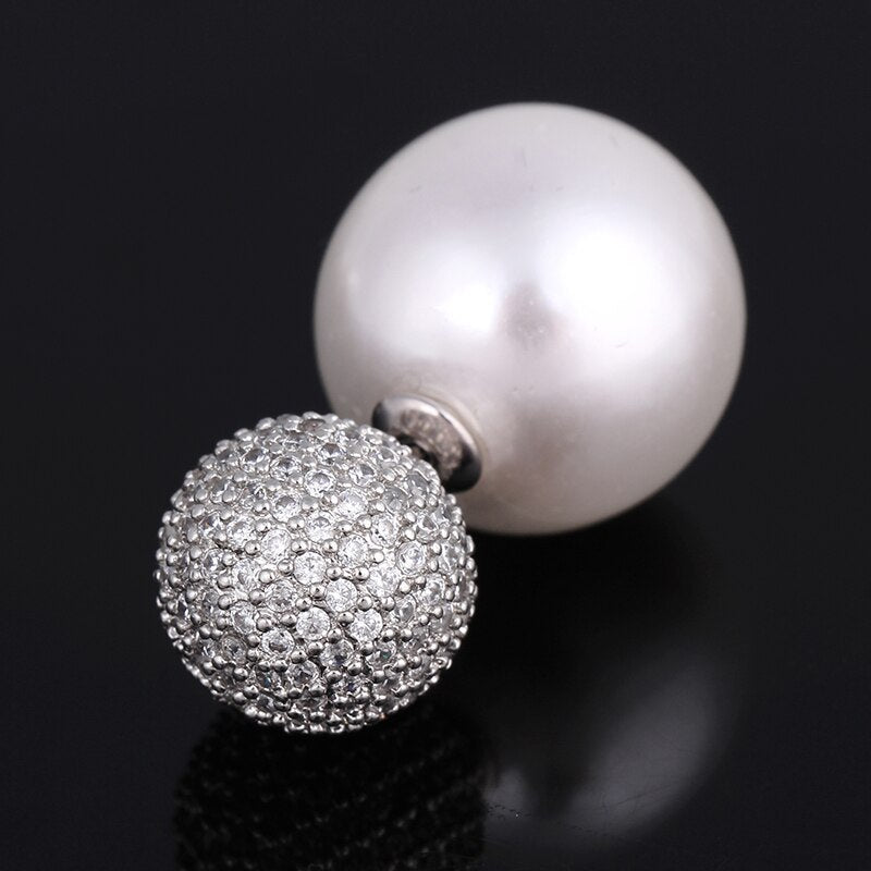 <transcy>Pendientes de perno prisionero de doble bola reversibles de perlas de plata de punta completa simulada de lujo con circonita cúbica</transcy>