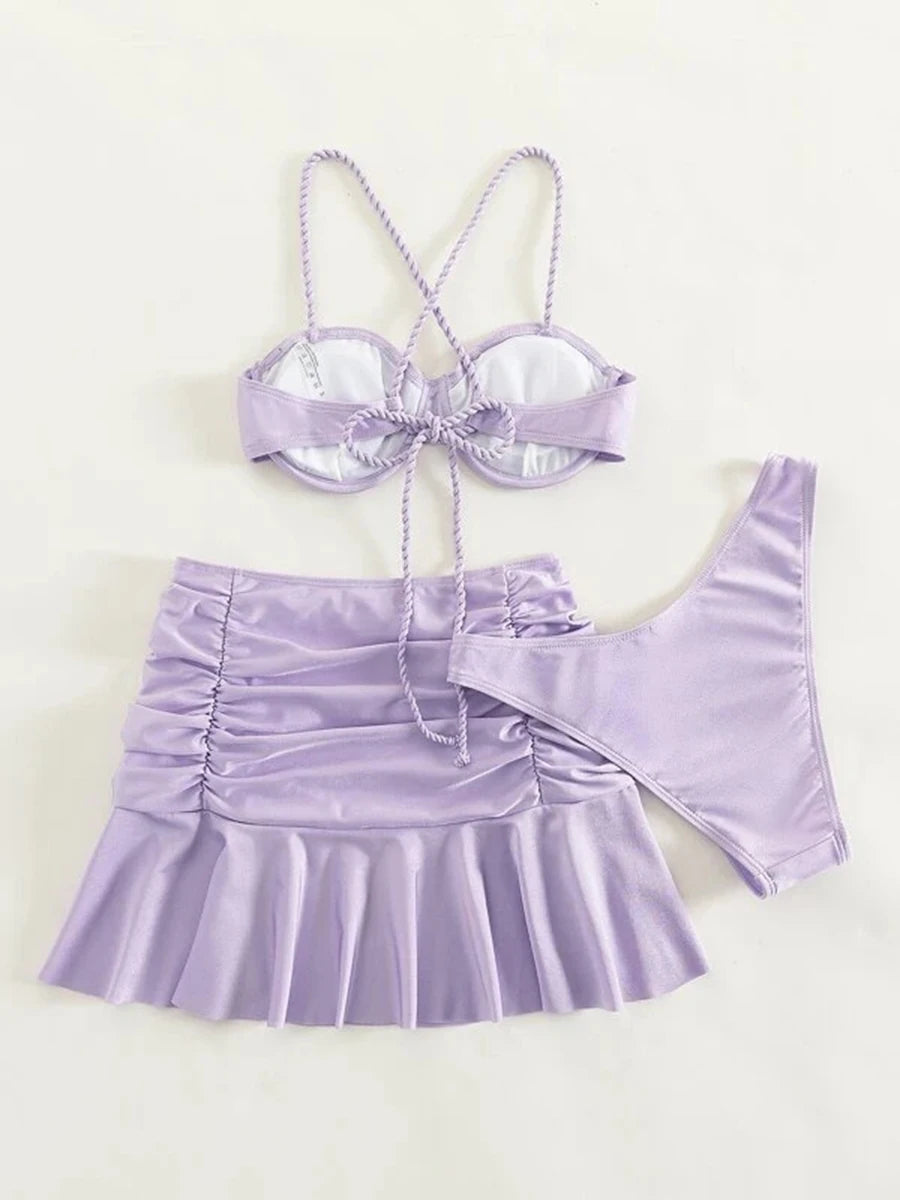 Enhance your beach look with our Make It Fun 3-Piece Skirtini! Made from comfortable polyester, this versatile swimsuit features a solid pattern and wire-free support for all-day comfort. Step out in style and confidence with the perfect mix of fashion and function.