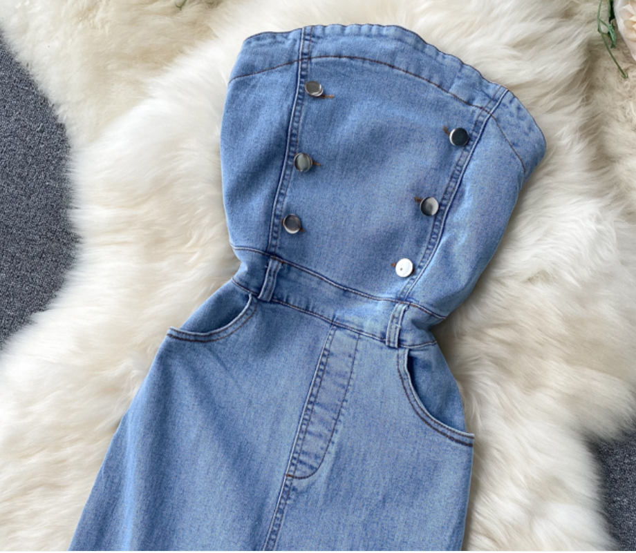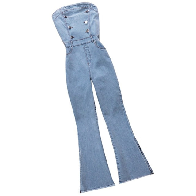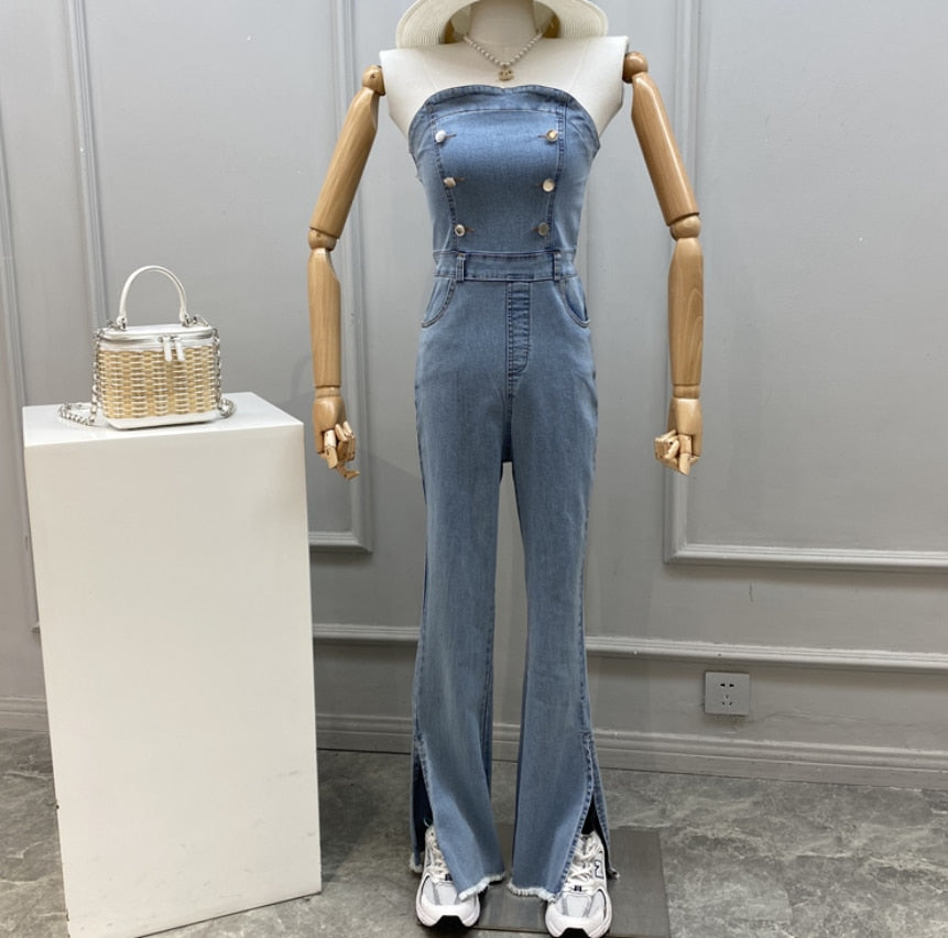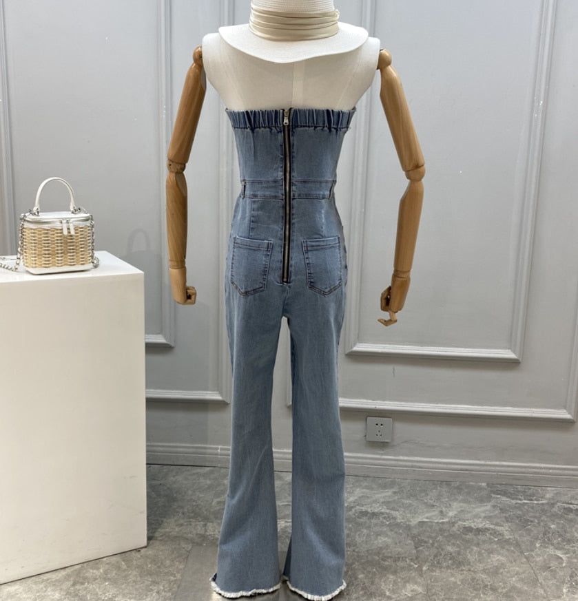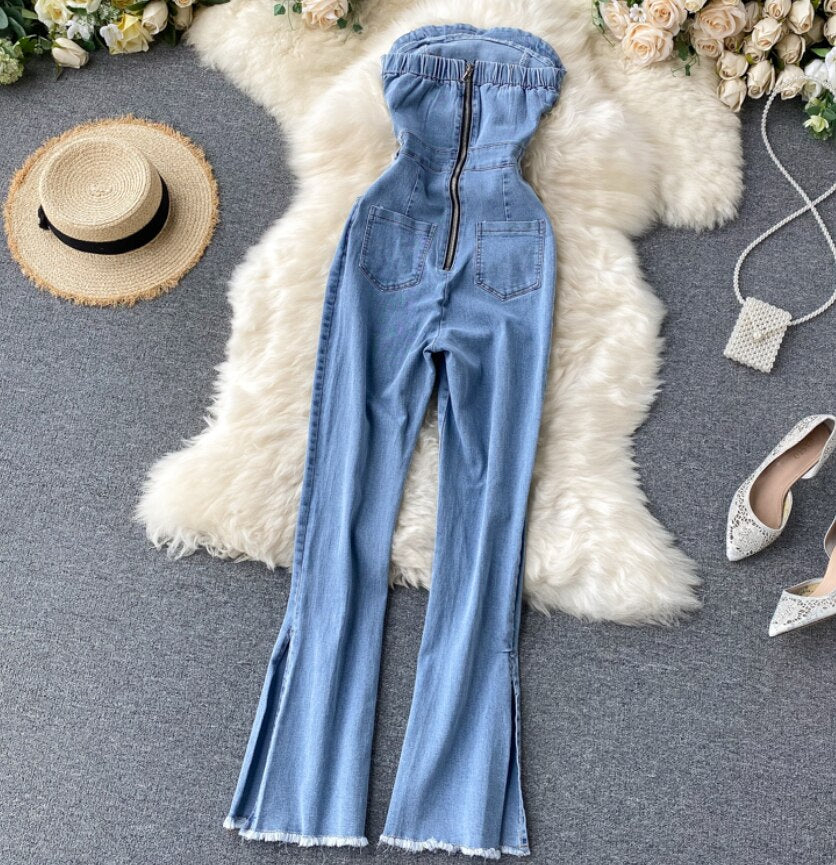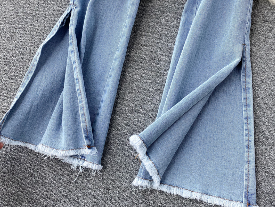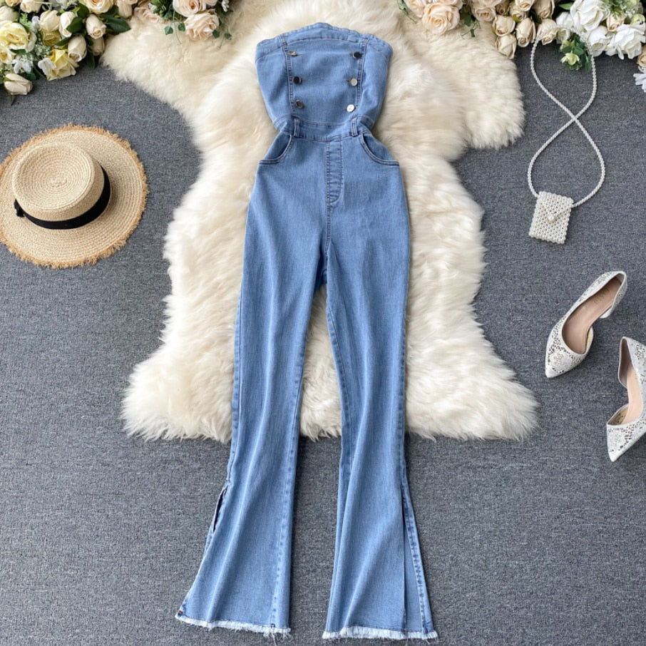 Mono de algodón lavado claro con bolsillos y parte inferior acampanada
