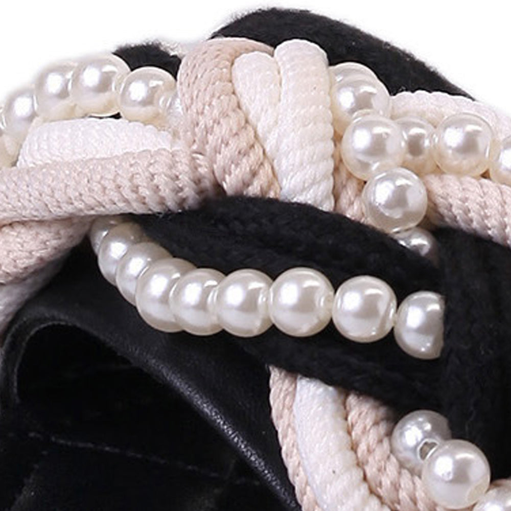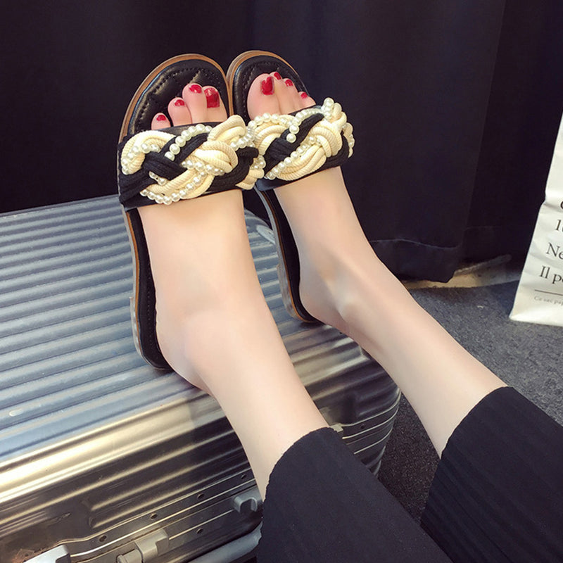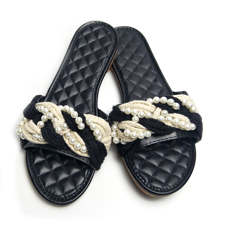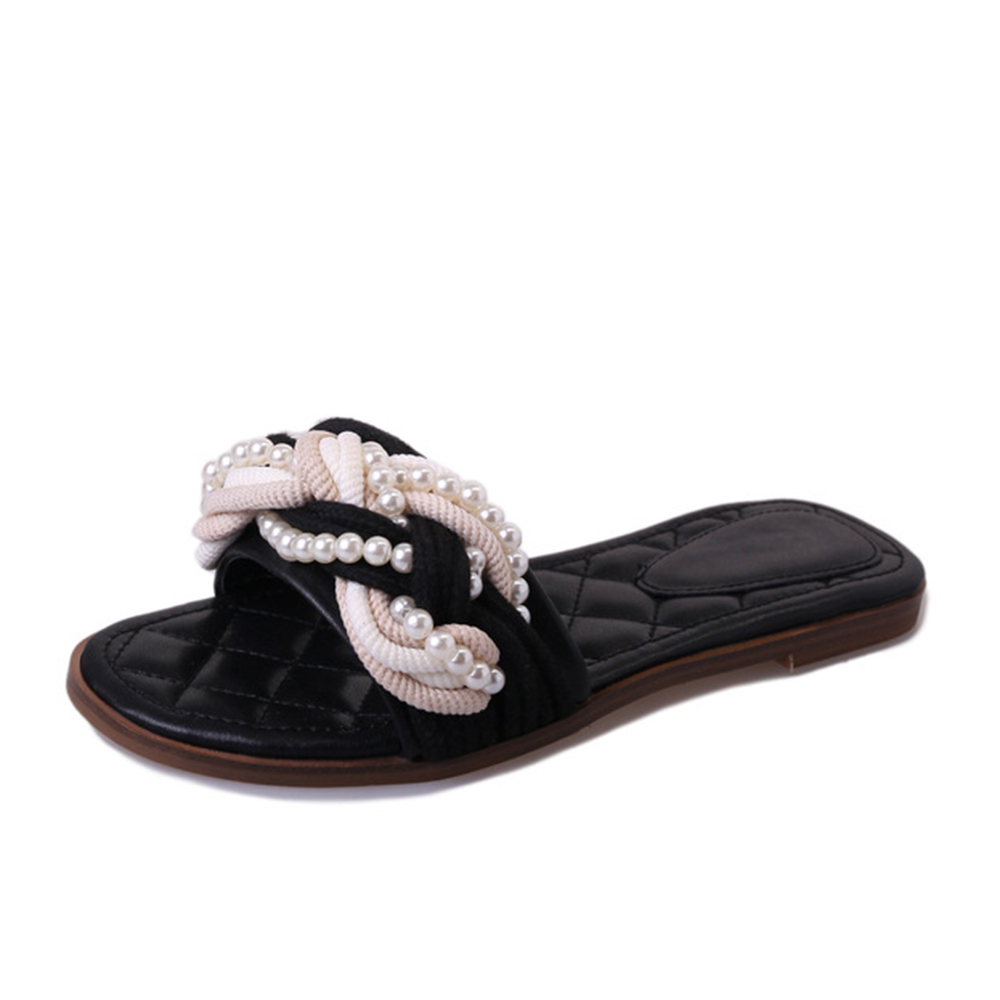Sandalias planas de cuero PU con decoración de perlas