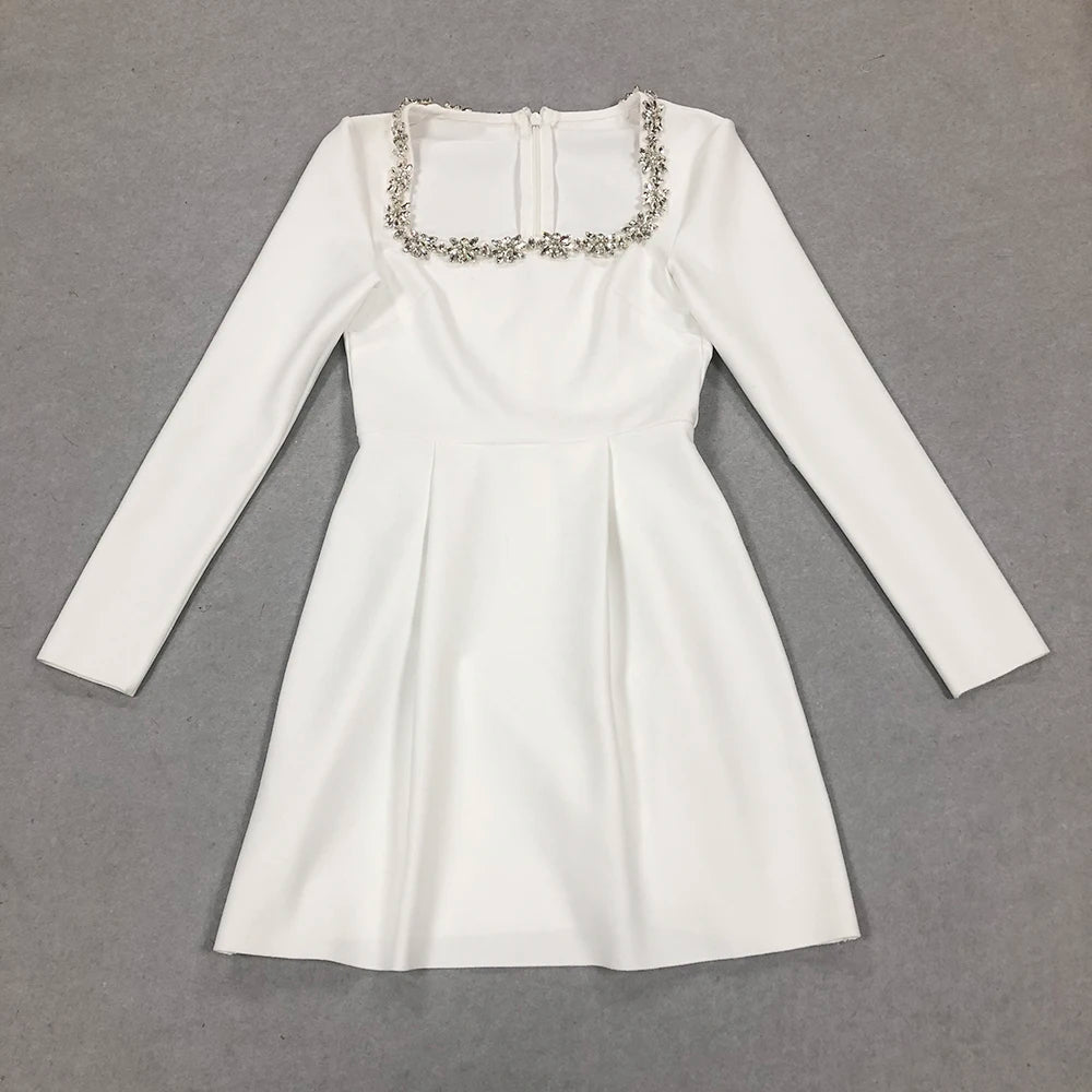 Transform into a vision of elegance with our Midnight Glow Mini Dress. The square collar neckline adds a touch of sophistication, while the polyester material and regular sleeve style provide comfort. The natural waistline complements any figure, making you feel confident and beautiful all night long.