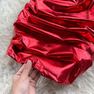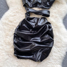 This sexy and stylish dress is the perfect choice for any occasion. The light and airy fabric makes it comfortable and ideal for a night out on the town. The ruched design adds a playful twist to the classic look. This short mini length is a great way to show off some skin while remaining stylish and high-fashion. The rhinestone embellishment adds a touch of glamour to your wardrobe.