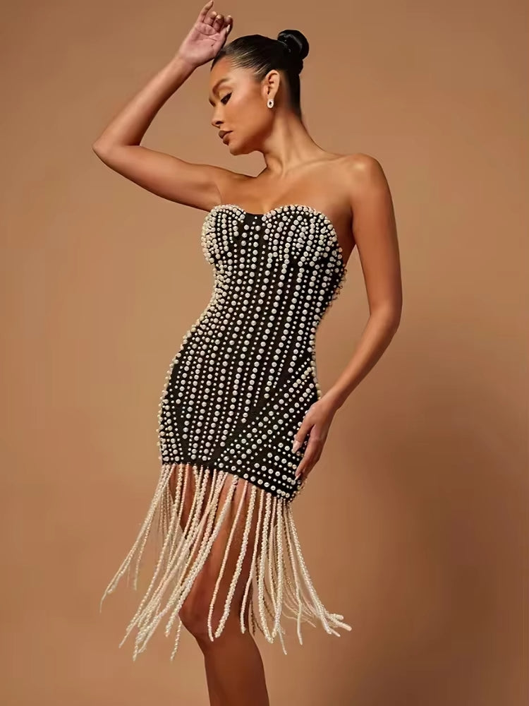Elevate your wardrobe with our Move With The Melody Mini Dress! Crafted from high-quality nylon, this dress features a slim fit and beaded decoration, making it the perfect statement piece. Breeze through your day with confidence and style in this above knee, mini dress.