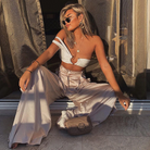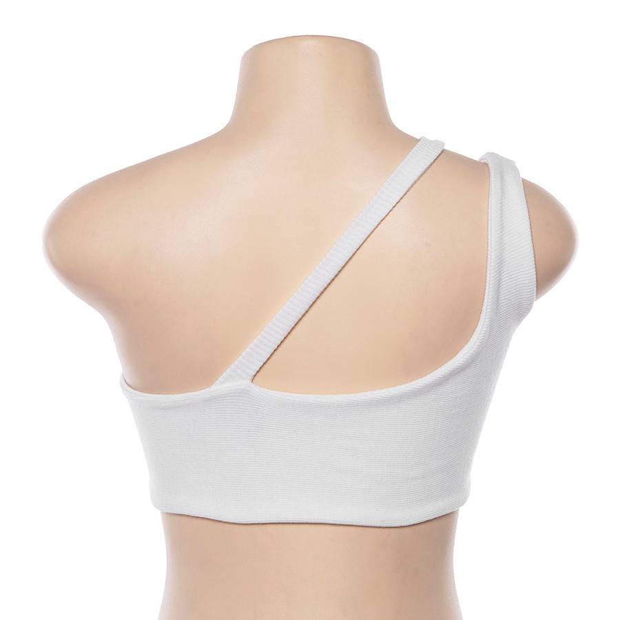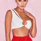 Top camisola de jersey de poliéster y licra con decoración de anillo de metal y una correa de hombro ahuecada