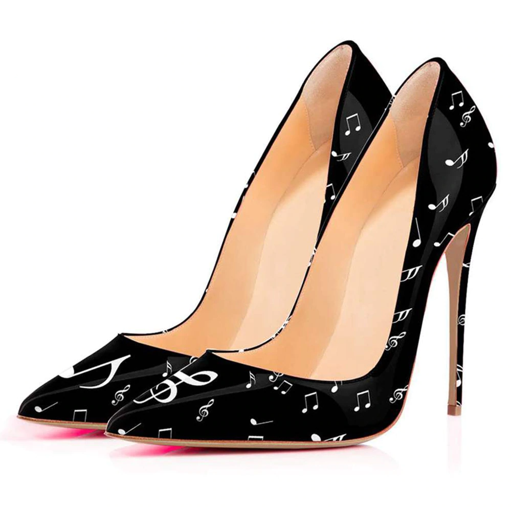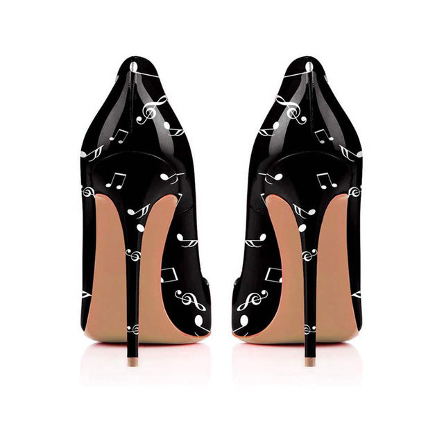 Zapatos Scarpin de tacón con diseño musical de cuero PU