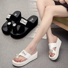 Sandalia de cuñas de cuero de PU de color sólido con decoración de diamantes