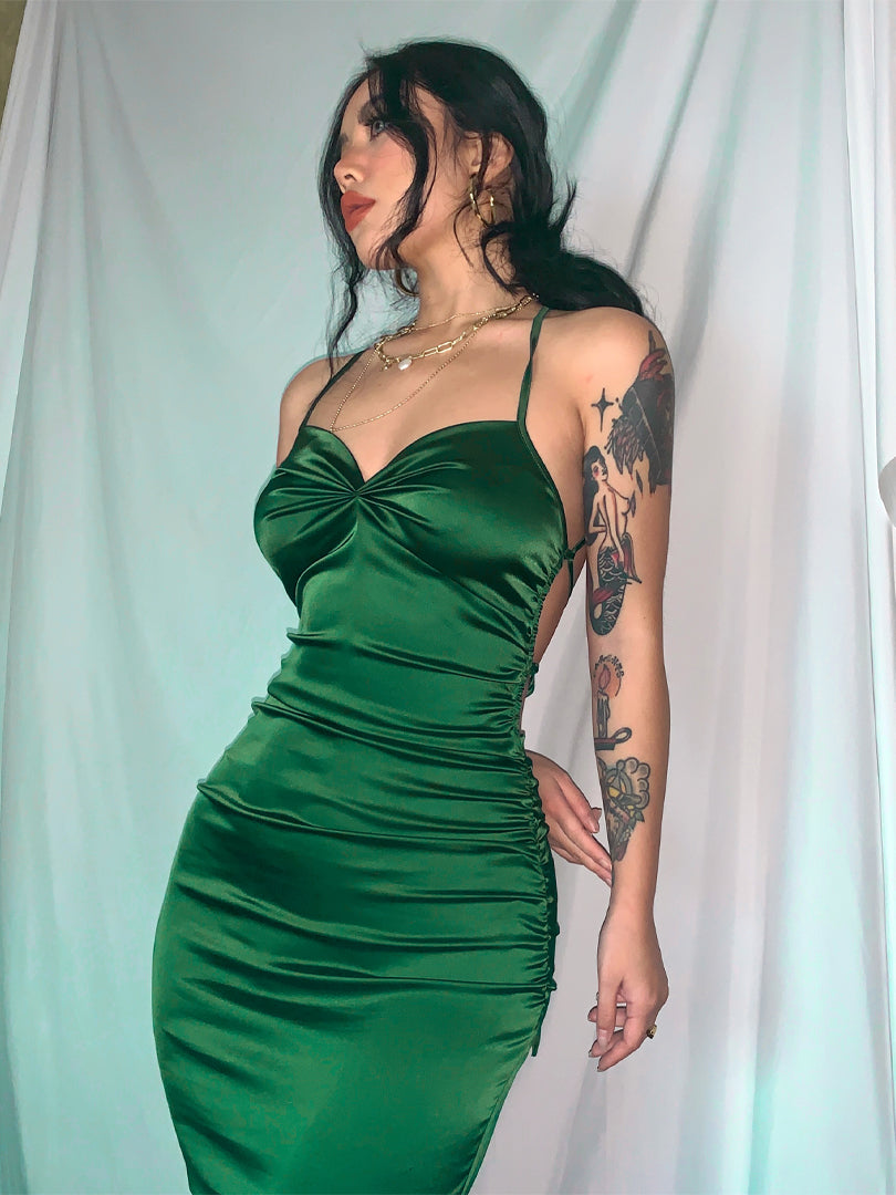 This is a beautiful, sexy and seductive alternative for wearing to the nightclub or going out with friends. The beautiful dress has a sweetheart neckline and a spagheti strap. The dress also has backless design with bandage which is perfect for showing off your back and your shape. This dress is made from a polyester fabric which is high quality and can be worn again and again.