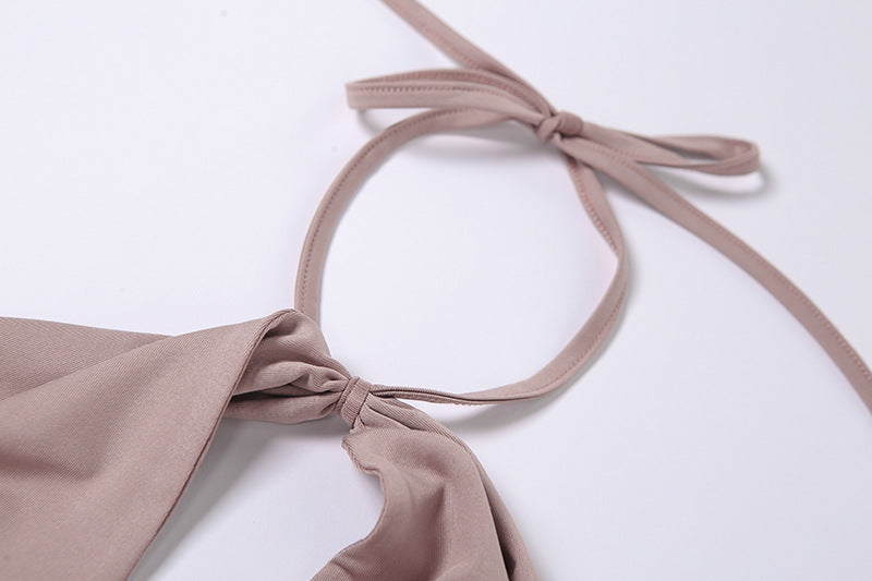 Style meets comfort in this cute and stylish mini dress that is sure to spice up your casual wardrobe. The ruched design on the back is great for dressing up or down. A cute and playful halter neckline is the perfect way to show off your figure.
