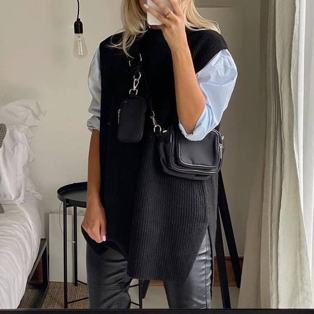 Chaleco sólido informal holgado con cuello en O con material acrílico