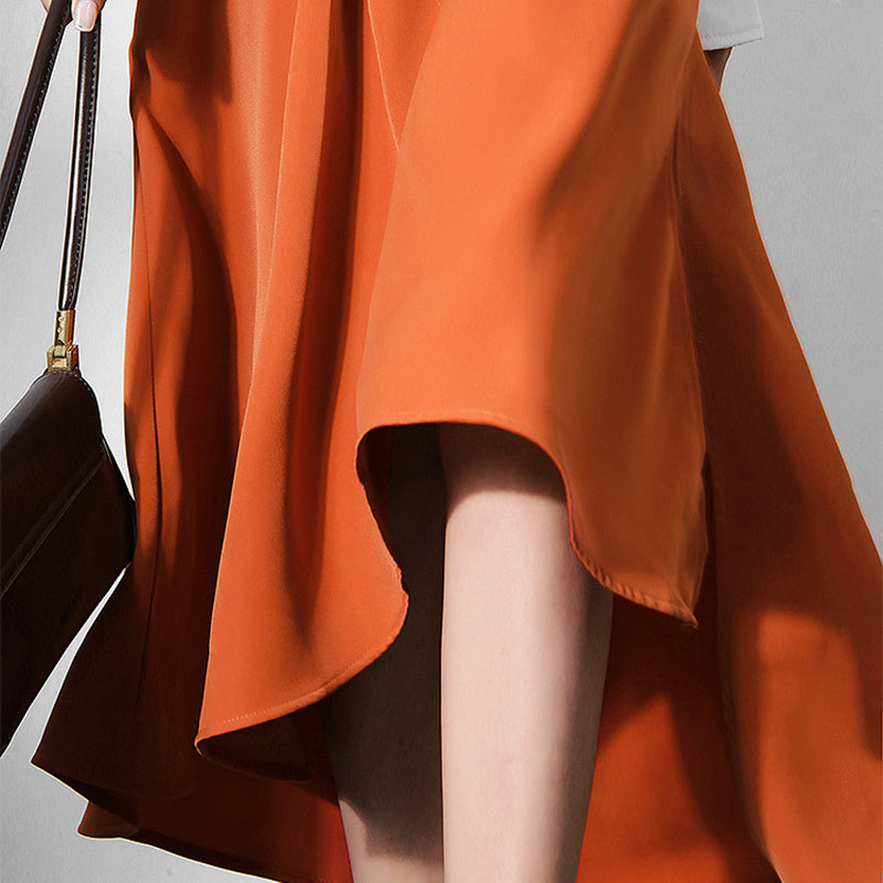 This flattering midi-length skirt is a simple and versatile style that can be paired with a number of different tops. The cotton material is durable and easy to maintain. With a simple and stylish shape, this skirt is a great staple for any wardrobe. The color-blocked design gives it a modern look that is versatile enough for any occasion. The asymmetrical silhouette is sexy and feminine. With a medium flowy fit, it's a flattering option for any body type.