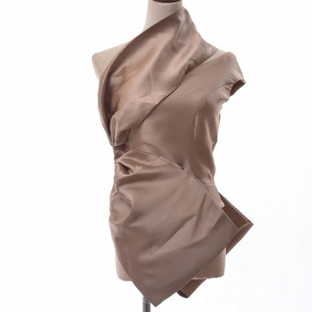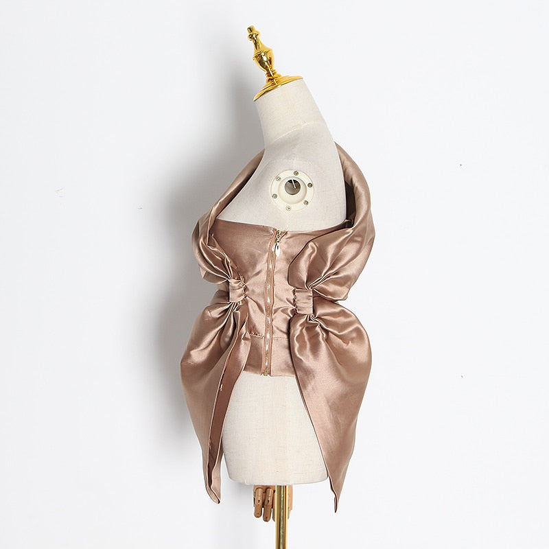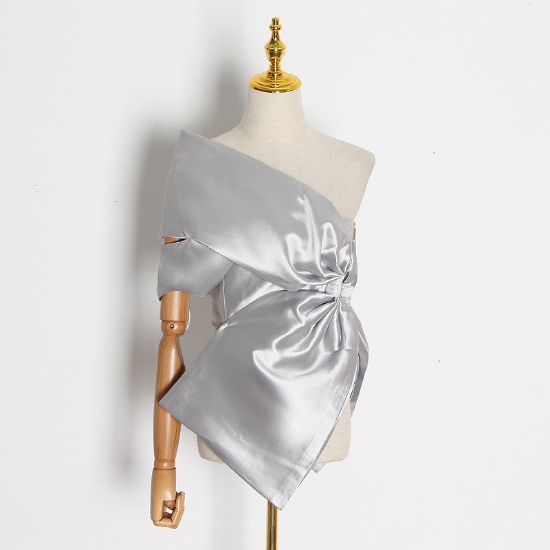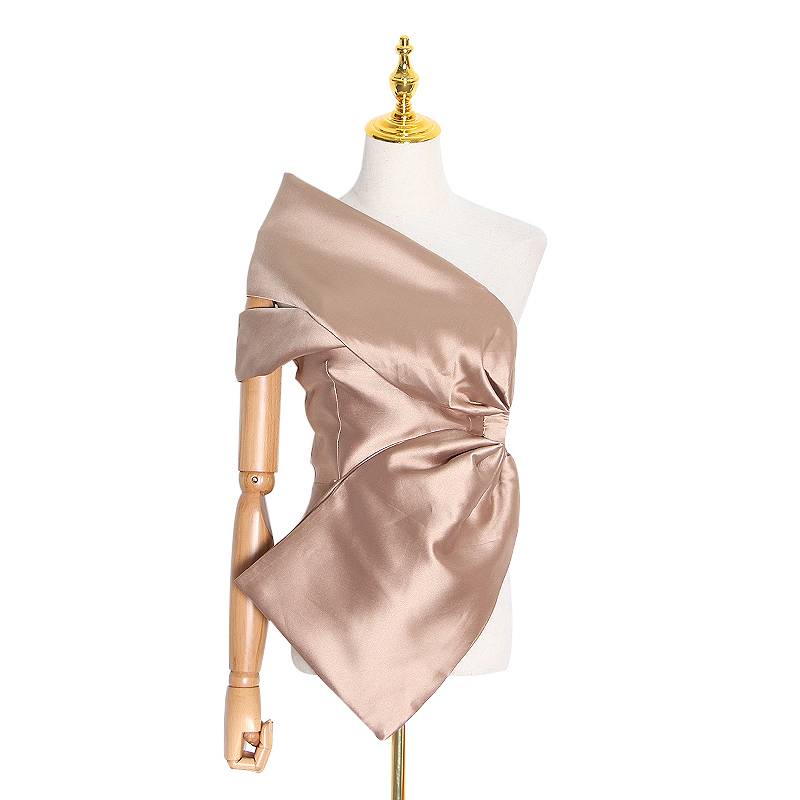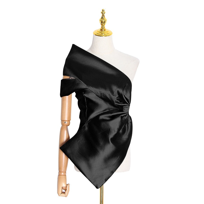 Top de fiesta de patrón sólido con cuello sesgado y gran decoración de cinta