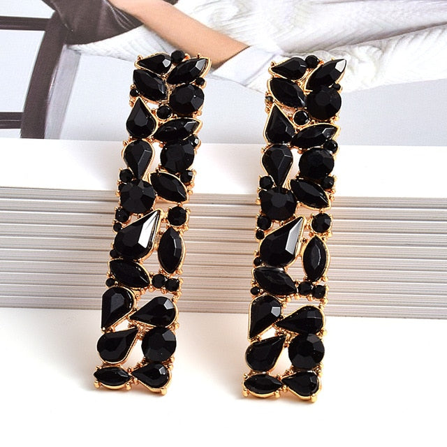 Aretes largos rectangulares de diamantes de imitación con material de aleación de zinc