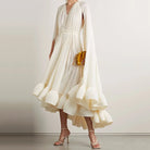 Unleash your inner paradise with our Paradise Lost Midi Dress. Made from luxurious synthetic material, this sleeveless dress features a beautiful ruffle detail and a solid pattern, perfectly accentuating your figure. With its mid-calf length, it's the perfect combination of chic and comfortable.