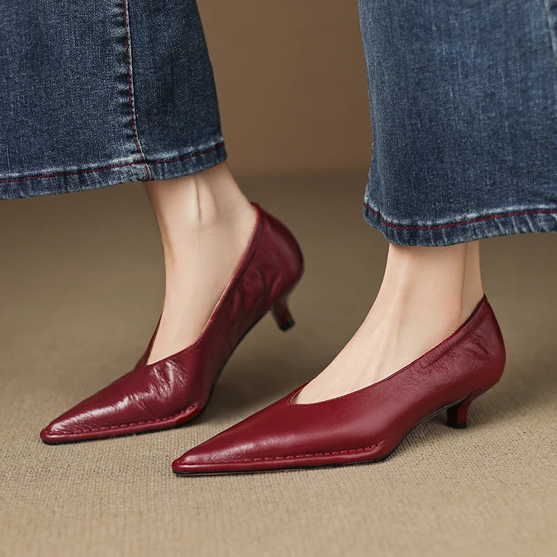 Elegant pointed toe slip-on pumps designed for effortless style. The sleek silhouette elongates your leg line while the slip-on design offers convenient all-day wear. Crafted with a comfortable heel height, these versatile pumps transition seamlessly from office to evening occasions. Perfect for completing professional outfits or adding polish to casual ensembles.