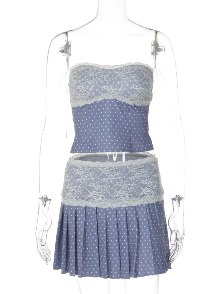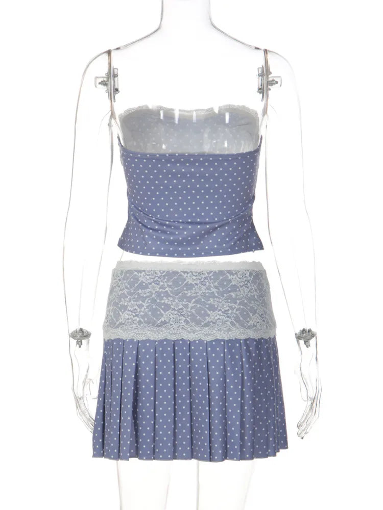 Polka Dot Lace Pleated Skirt Set