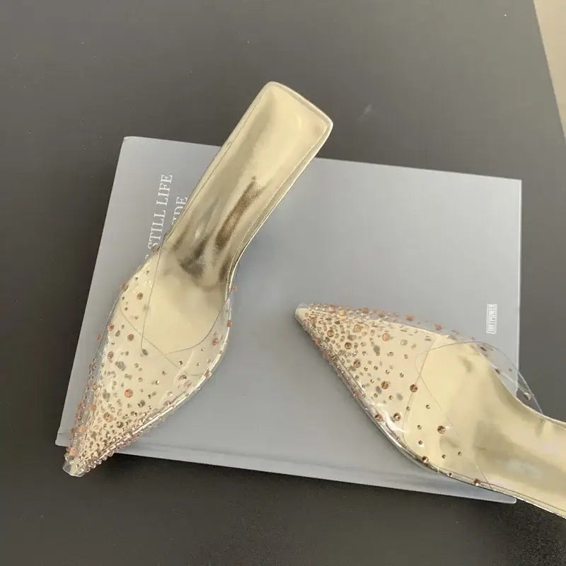 Rhinestone Transparent Mules Pump Shoes
