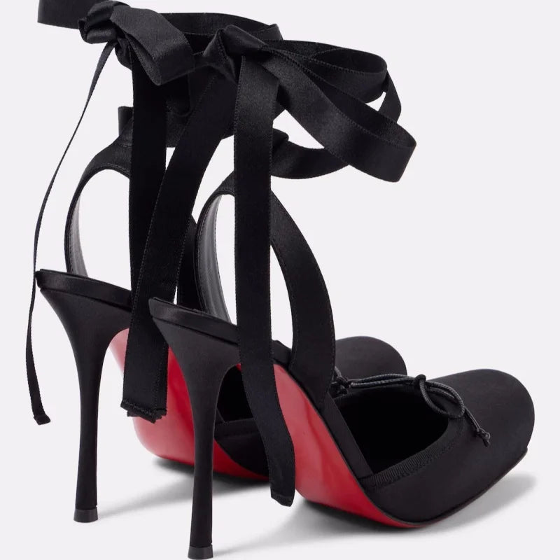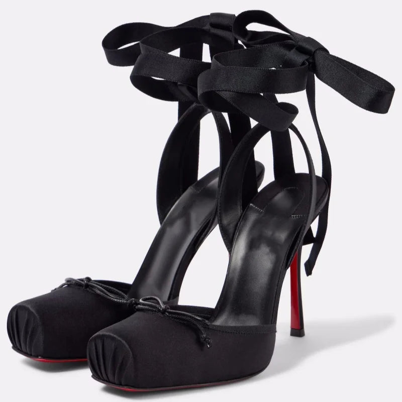 Dare to make a statement with these Romance in Ruins Heels—where architectural square toes meet romantic ribbon ties for an unexpectedly bold look. The sleek silhouette commands attention while the delicate ribbon detailing adds an edge of intrigue. Elevate your style with a shoe that whispers danger and demands admiration in equal measure.