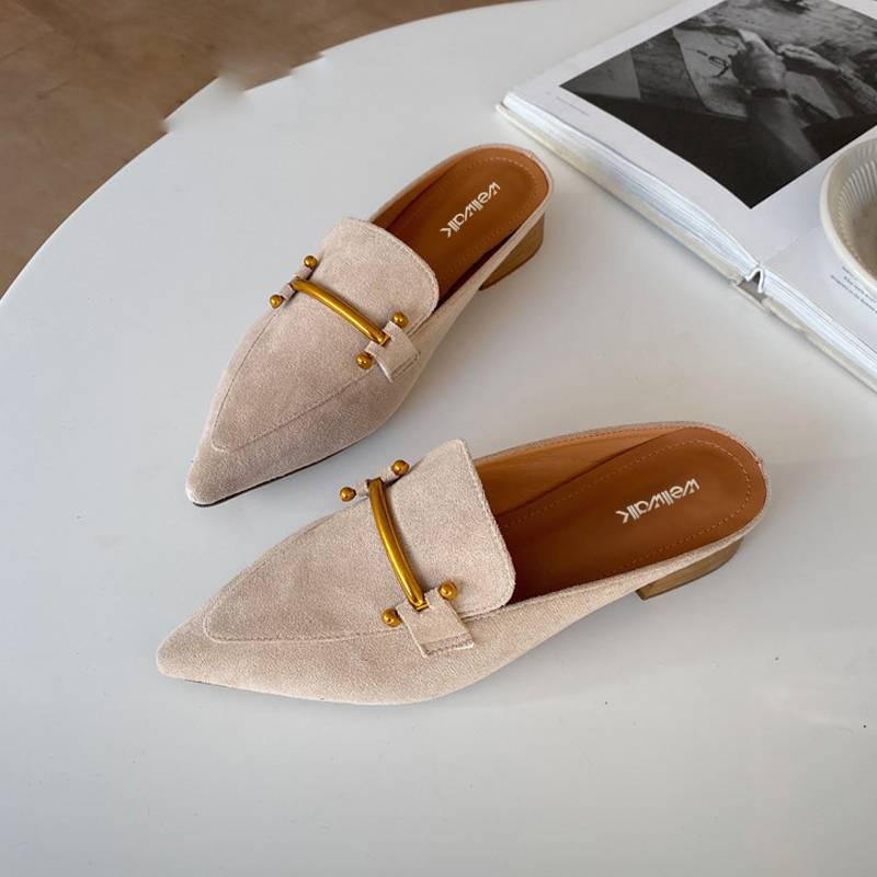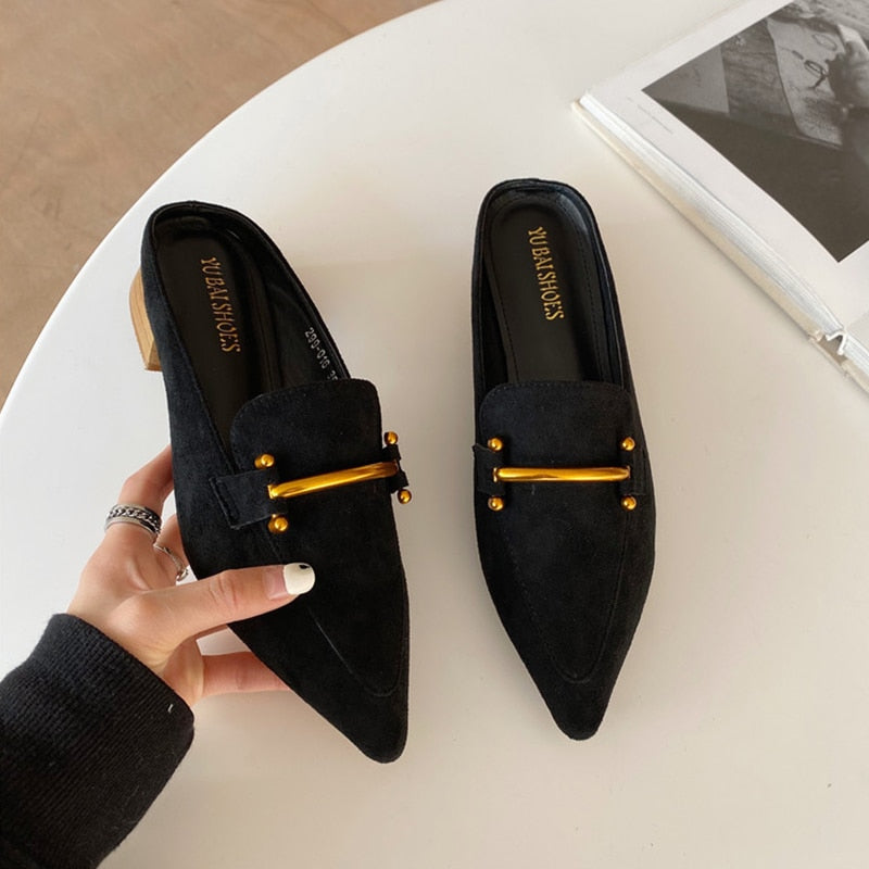 <transcy>Rome Unicorn Flock Suede Tacones finos Mujer Zapatos planos</transcy>