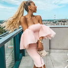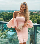 Minivestido de manga abullonada con decoración de volantes de poliéster y licra