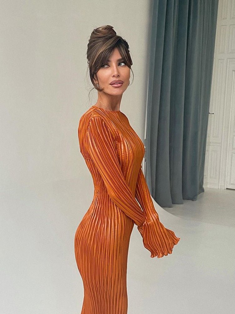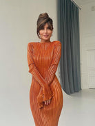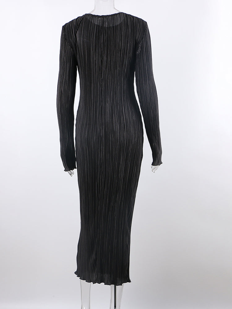 This dress is made of polyester, o-neck, long sleeve, pullover. The dress is perfect for a night out or a nice dinner with friends. It's classy and elegant. The dress is designed to flatter all shapes and sizes. It has a very simple and clean design, so it's easy to pair with a number of different accessories.