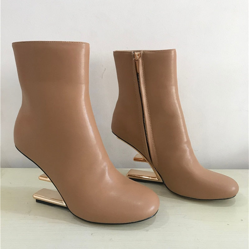 These women's ankle boots are crafted with a microfiber upper, round toe, and unique heels design. The classic style of these women's boots makes them perfect for any season.
