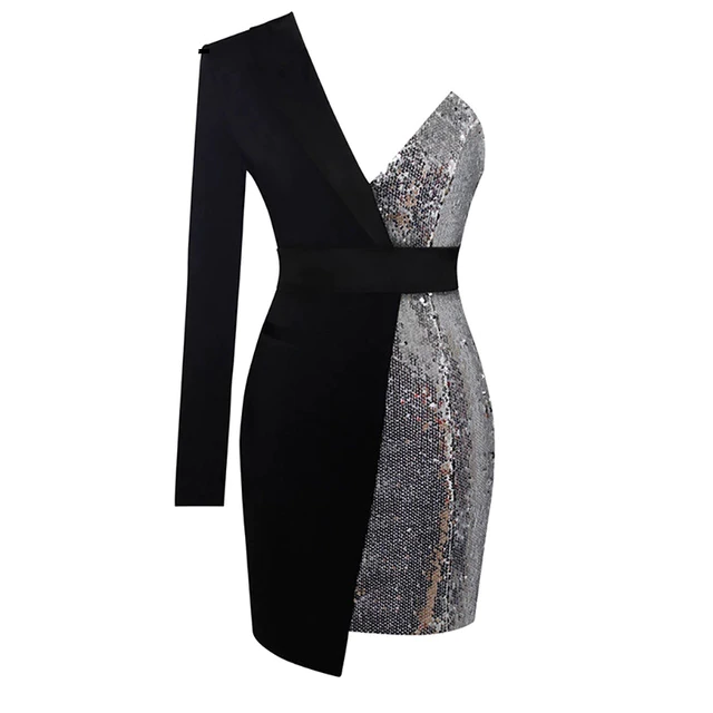 <transcy>Mini vestido ajustado con lentejuelas y manga de un hombro con retazos irregulares para mujer</transcy>