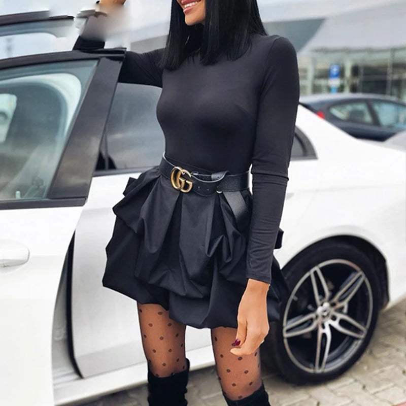<transcy>Vestido de mujer de manga larga con mini brote negro sexy</transcy>