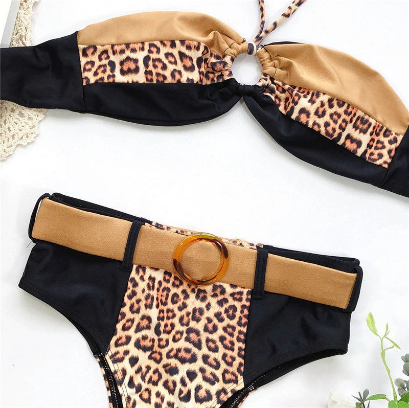 Bikini palabra de honor con estampado de leopardo hecho de licra y poliéster