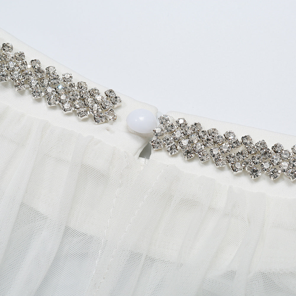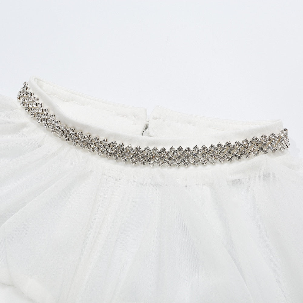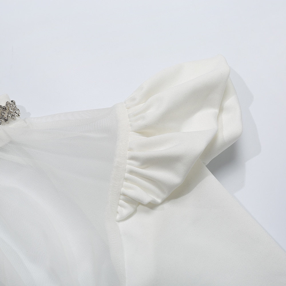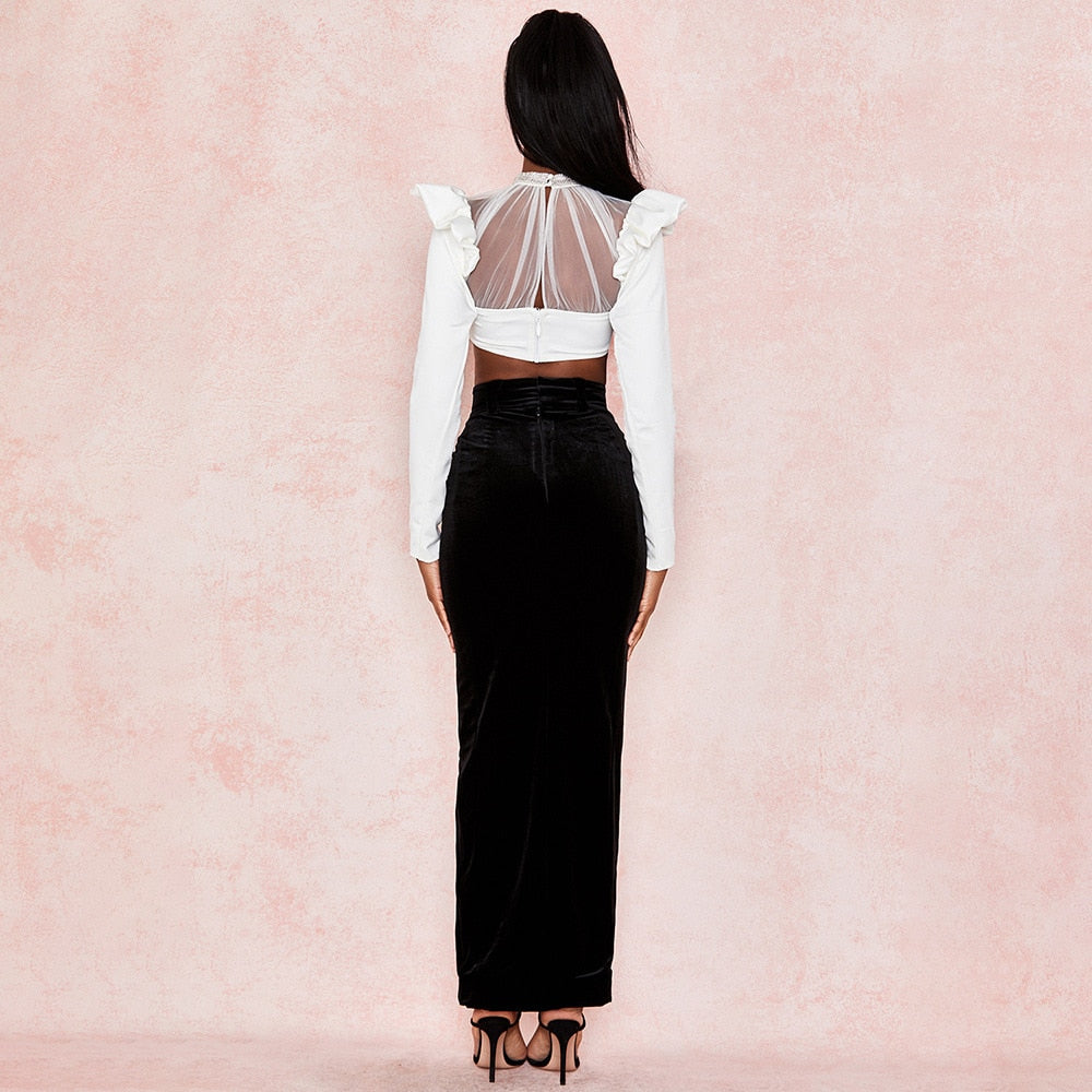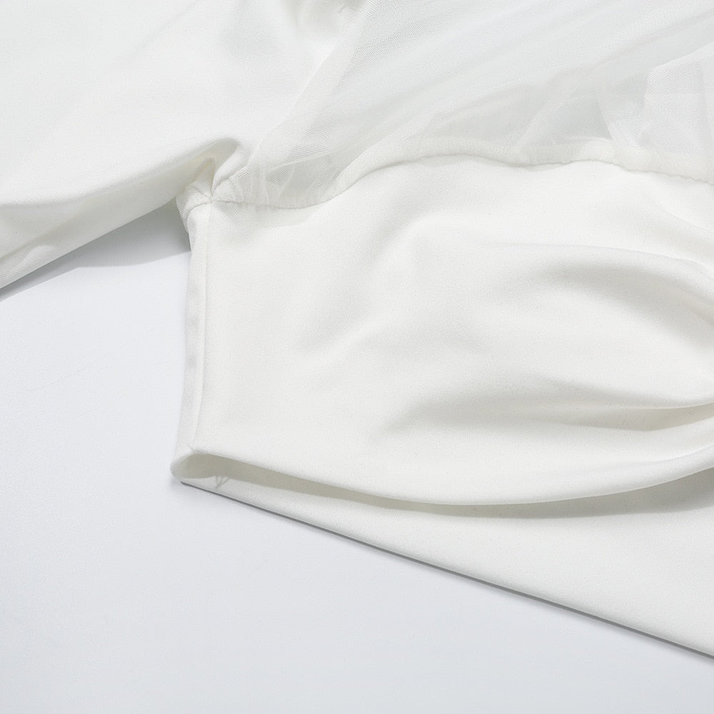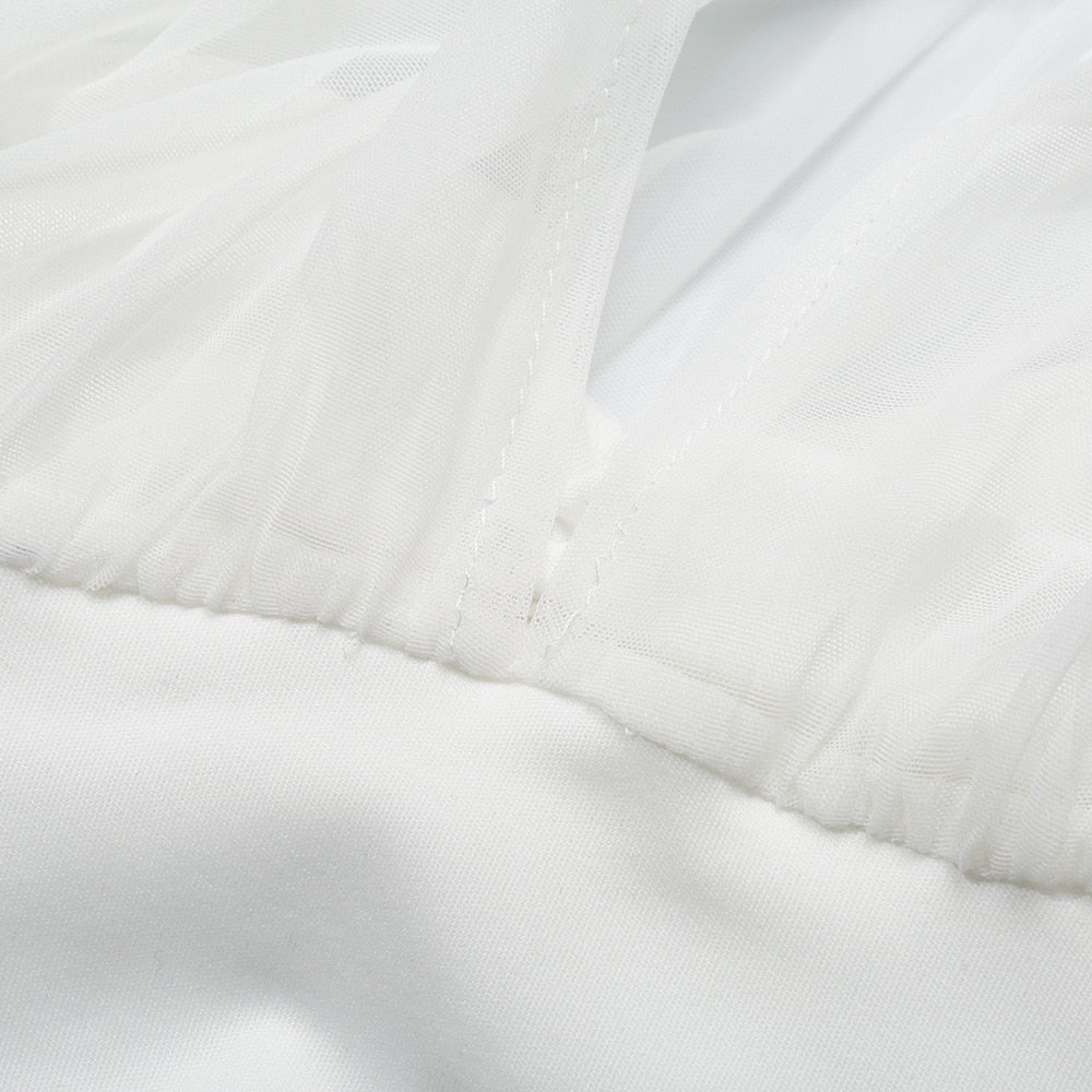 <transcy>Top corto de mujer con manga con volantes y empalme de malla transparente</transcy>