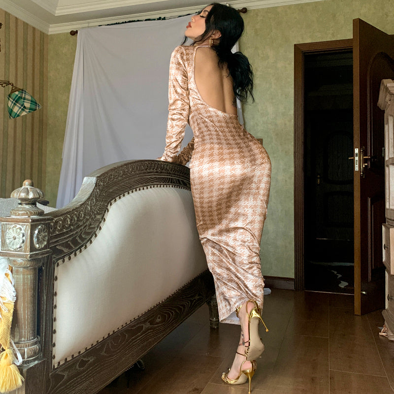 The perfect addition to your summer wardrobe, this lightweight and breezy maxi dress is a stylish style that can be worn for any occasion. This backless design is a playful choice that will make you stand out from the crowd. The o-neck collar and long sleeves give off a classy, sophisticated look that is perfect for any style.