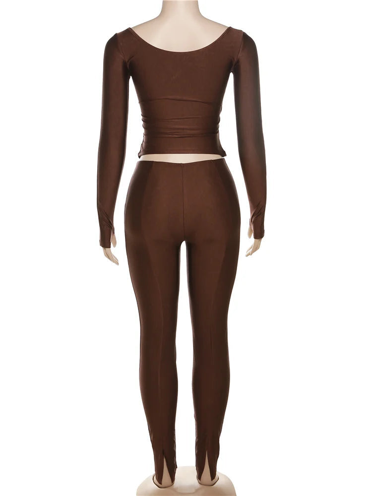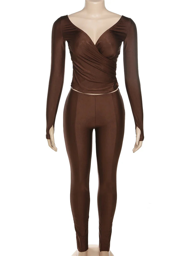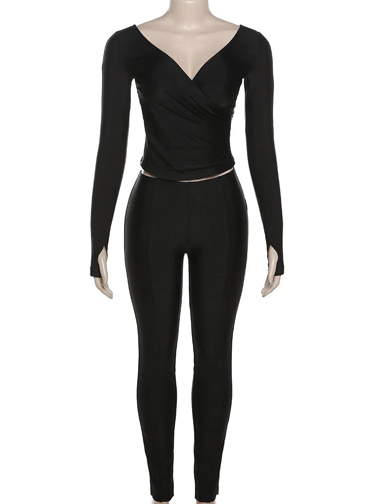 Elevate your everyday wardrobe with this sleek Skinny Fit Cross-Front Pant Set. Crafted from a premium polyester and spandex blend, offering the perfect balance of comfort and style. The cross-front design adds a modern, flattering silhouette, while the solid color keeps things versatile for any occasion. This pant set is designed to support your confidence and personal style.