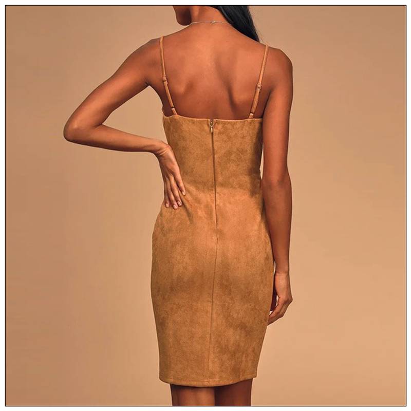 Minivestido de tirantes finos sin mangas de patrón sólido con material de poliéster