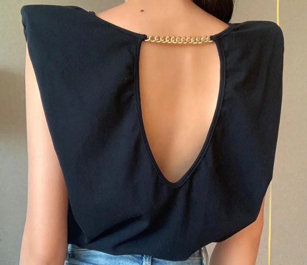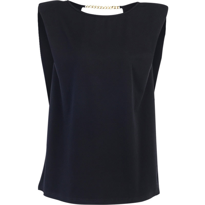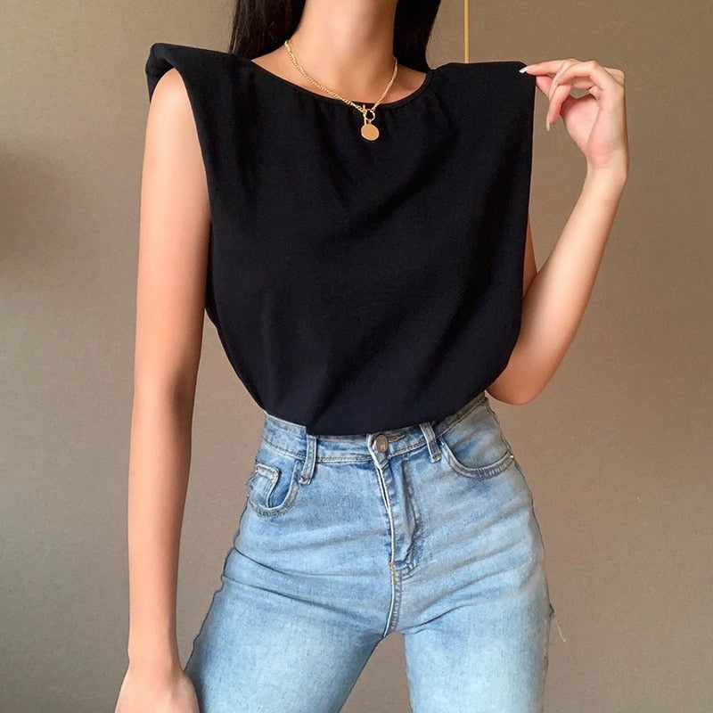Camiseta negra sin mangas con hombros acolchados y material de algodón spandex