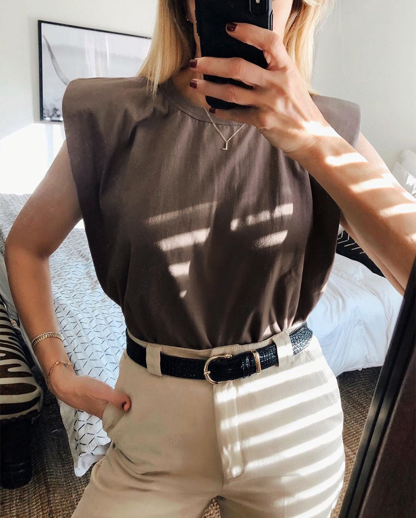 Camiseta sin mangas de color liso con cuello en O y material de algodón
