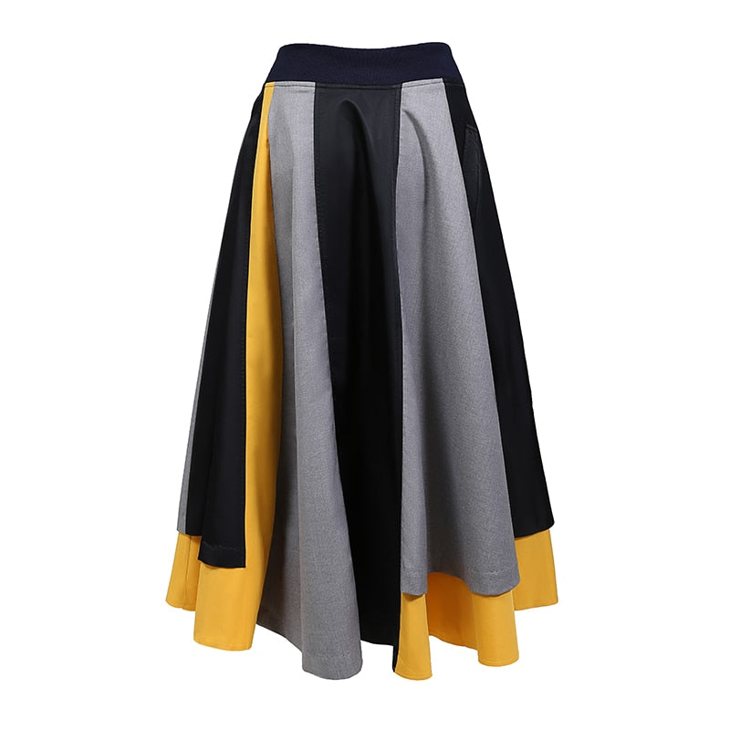 Falda a media pierna multicolor con cintura elástica, corte en A y material de poliamida de algodón