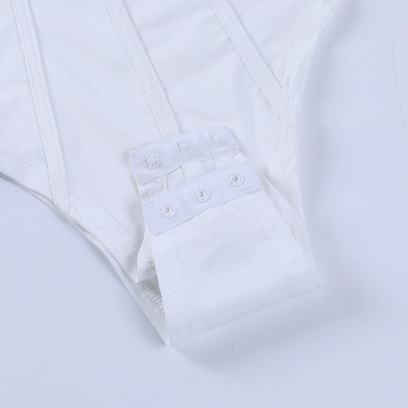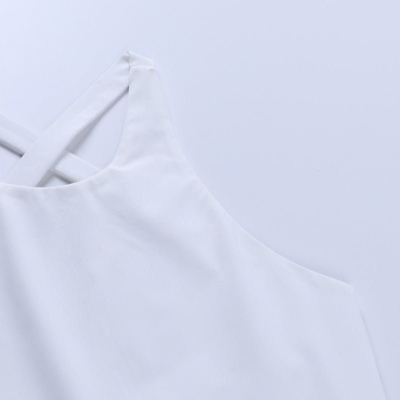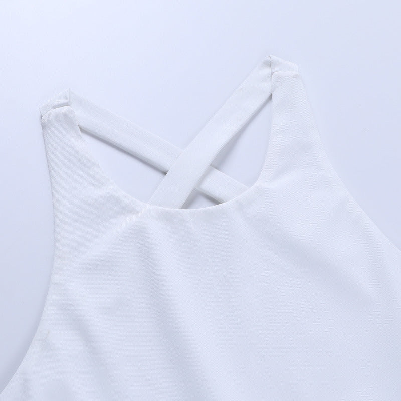 Body de poliéster blanco liso sin mangas con tirantes cruzados en la espalda