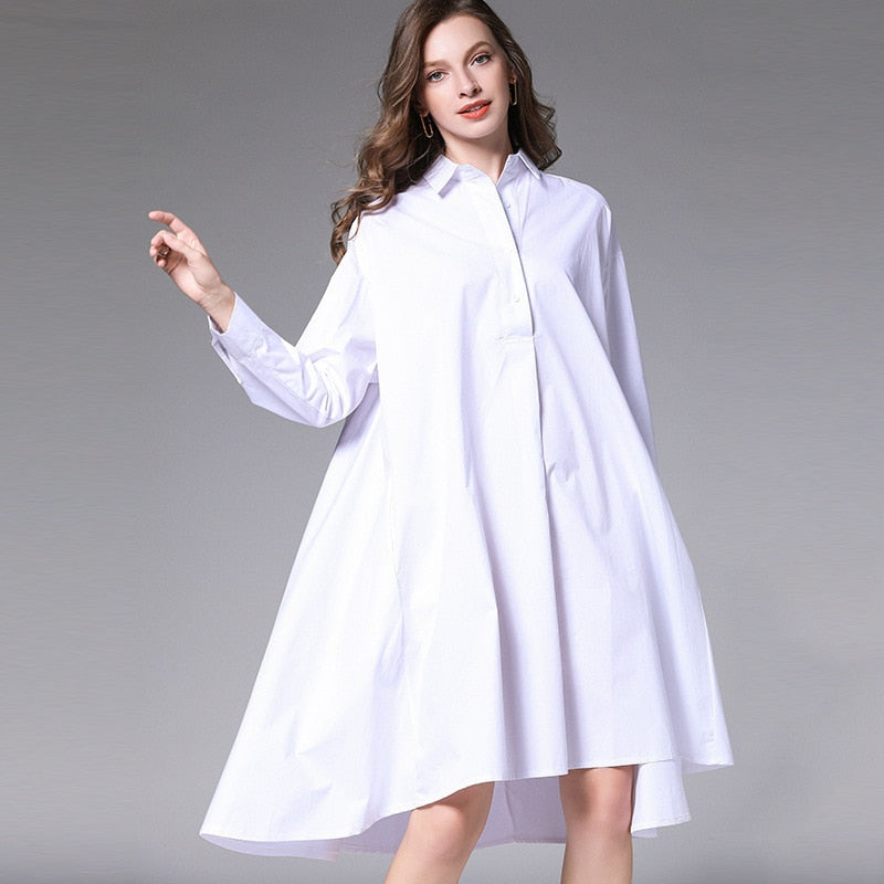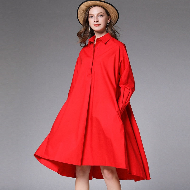 Minivestido de corte evasé holgado con color liso, cuello vuelto y material de algodón y poliéster
