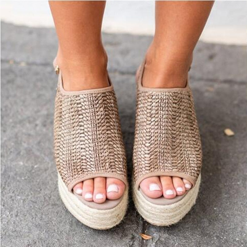 Sandalia Tacones Cuñas Decoracion Madera Microfibra