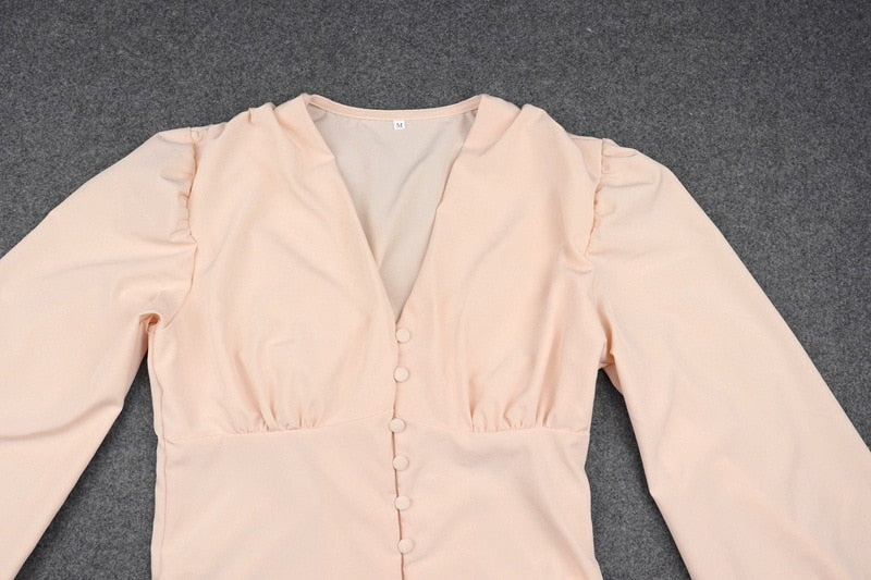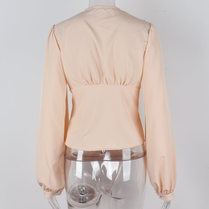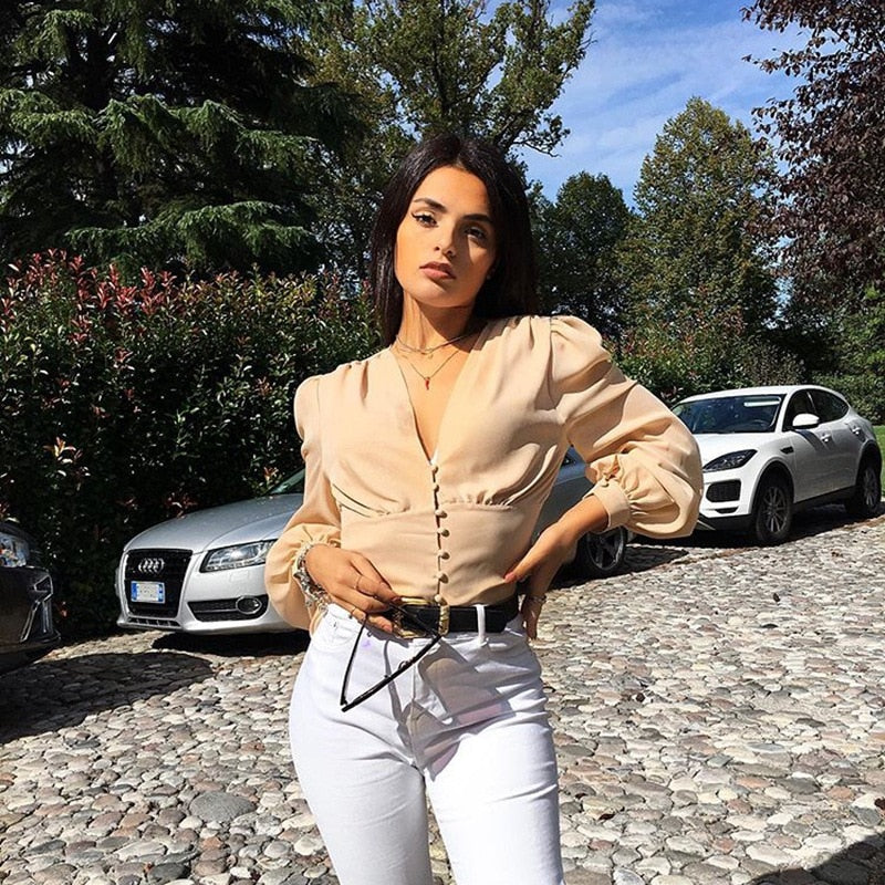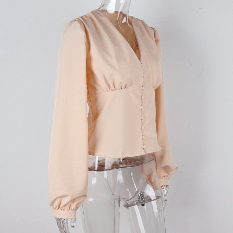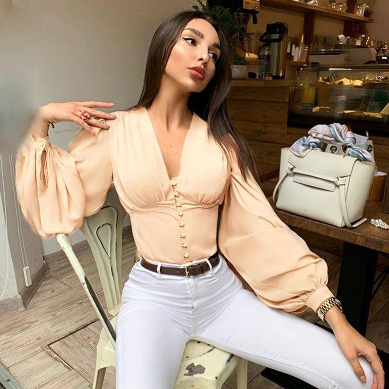 <transcy>Streetwear Blusas De Mujer De Manga Larga Con Cuello En V De Botón Sólido</transcy>