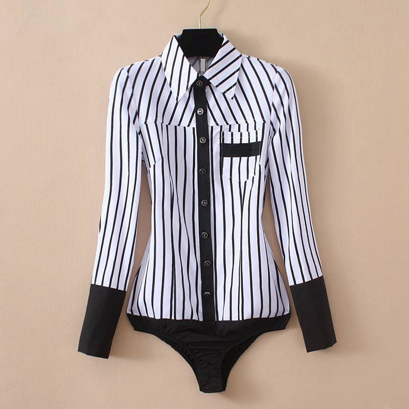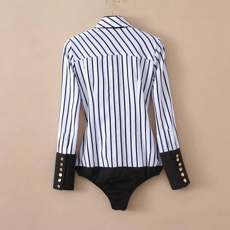 Body de manga larga con cuello vuelto con patrón de rayas, decoración de bolsillo y material de poliéster