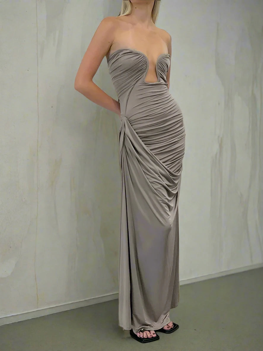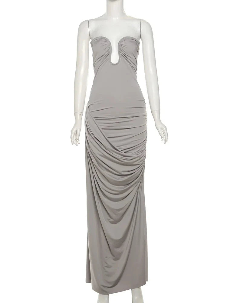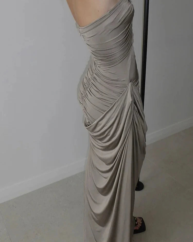 Feel confident and stylish in our Sunset And Vine Maxi Dress. The solid pattern and slim fit enhance your figure, while the asymmetrical decoration adds a unique touch. Made from a blend of polyester and spandex, this ankle-length dress is both comfortable and fashionable. Make a statement and turn heads in this must-have piece!