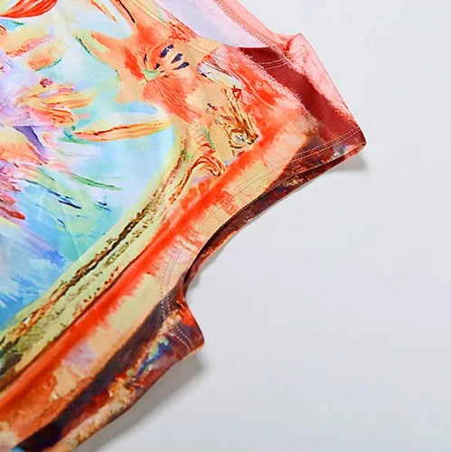 Add a touch of energy and style to your wardrobe with our Sunset Glow Kiss Crop Top. Made with a comfortable and flexible material, this crop top features a vibrant print pattern that will make you stand out in any crowd. Perfect for sunny days and summer nights, this top is a must-have for any fashion-forward individual.