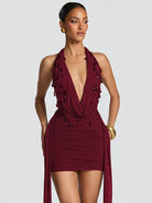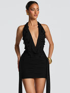 Embrace your boldest self in this striking teardrop crystal V-neck mini dress. Crafted from a supple polyester and spandex blend, it hugs your curves with confidence while the plunging neckline commands attention. Shimmering crystal embellishments catch the light with every move, making you impossible to ignore. The fitted silhouette and daring cut deliver pure edge—perfect for nights when you're ready to turn heads and own the room.