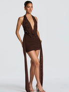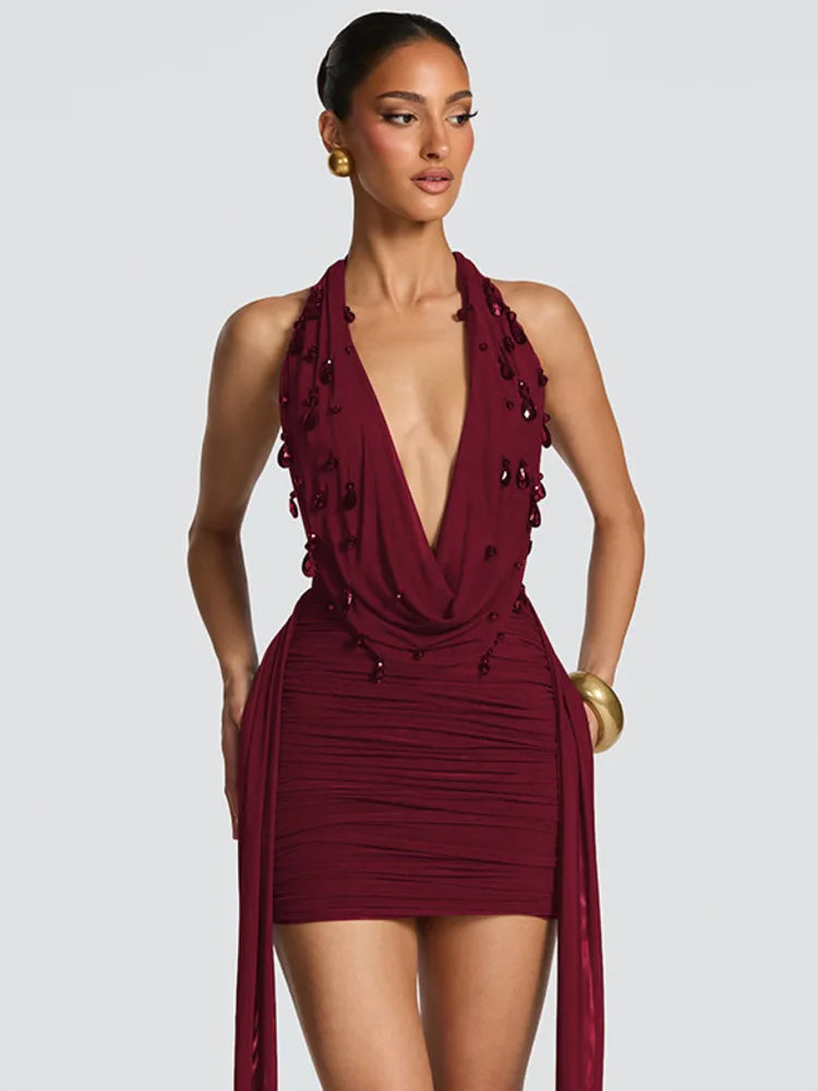 Teardrop Crystals V-Neck Mini Dress