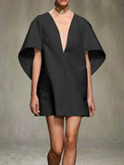 Step out boldly in the Telling You My Stories Mini Dress, designed to turn heads with its sleek solid color and daring V-neckline. Crafted from a stretchy blend of polyester and spandex, it hugs your silhouette comfortably while accentuating your confident style. Perfect for making a statement, this mini dress embodies fearless elegance for your next night out.