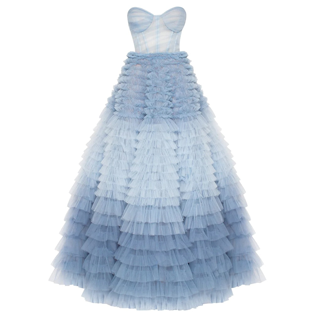 This lovely Air Was Cold Long Dress features a tulle construction with a strapless neckline, designed to add a touch of elegance and femininity to any occasion. Its gradient blue hue is timeless and the lightweight polyester material will keep you comfortable all evening.