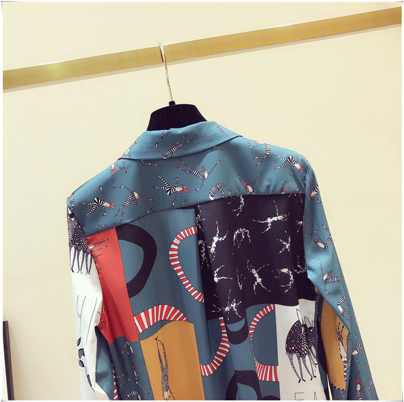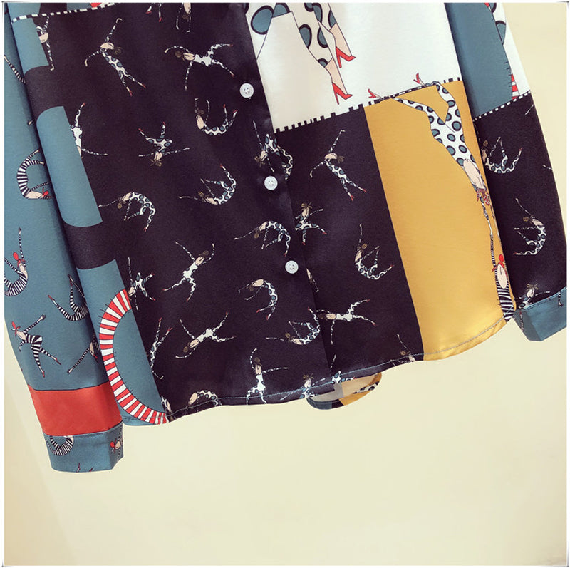 Camisas de poliamida de manga larga con patchwork multicolor de personaje de dibujos animados