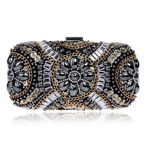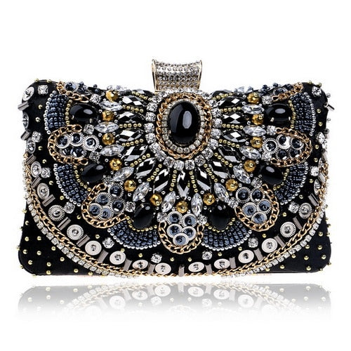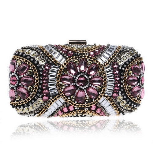 Clutch de poliéster con cierre de pestillo y decoración de cadena y diamantes de imitación